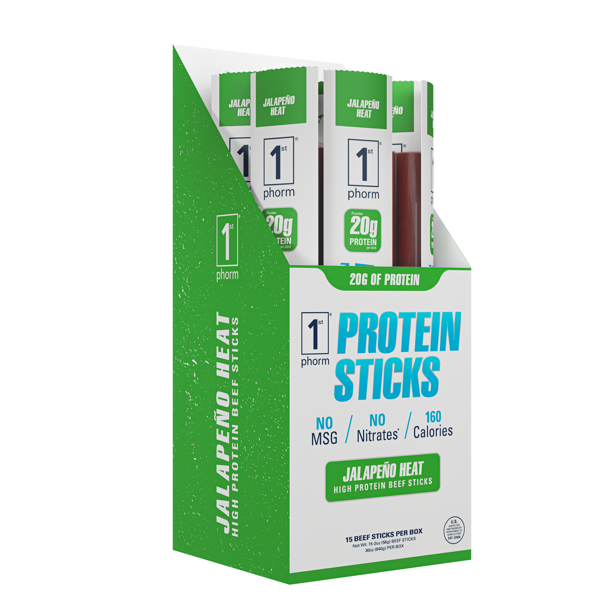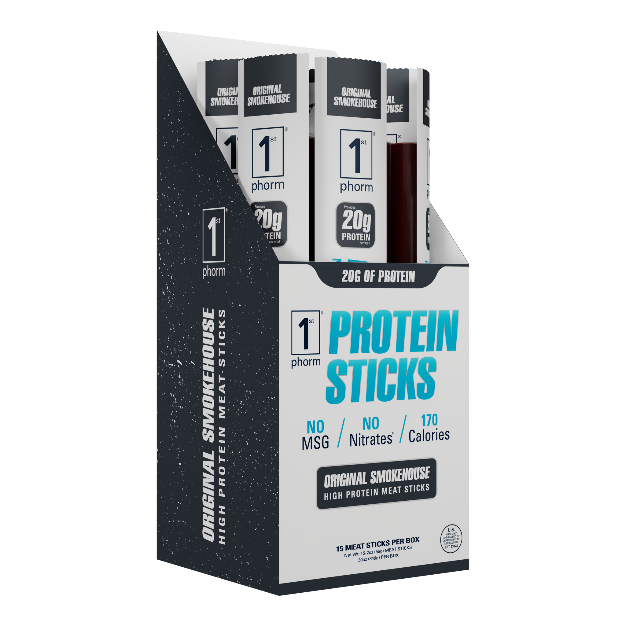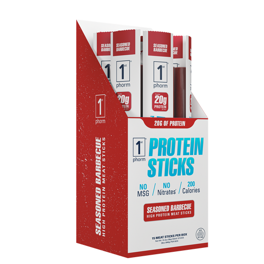 All it takes is just one bite to taste the difference in 1st Phorm’s high-protein meat sticks. It doesn’t matter what your goal is – lose weight, gain muscle, or be healthier, consuming more protein throughout the day is vital! Our protein sticks are made with the highest quality lean beef and pork available, and raised, butchered, processed, and packaged in the heartland of America. All of our amazing flavors are packed with protein for an incredible snack when you’re on the go.