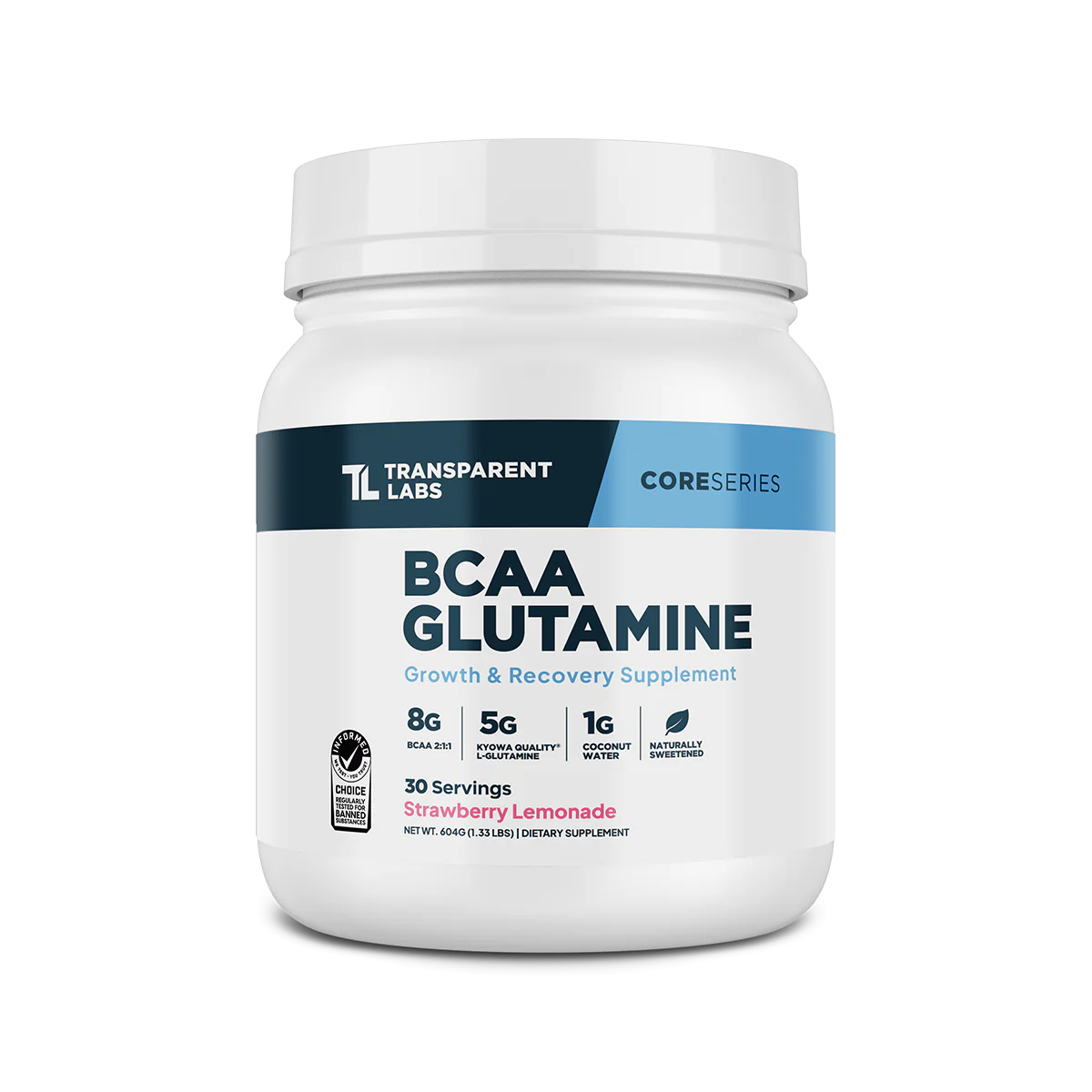 Transparent Labs BCAA Glutamine is the all-natural solution for active individuals and athletes looking to accelerate muscle recovery, reduce delayed-onset muscle soreness (DOMS), and support hydration. Each serving of this deliciously refreshing formula provides 8,000 mg of fermented, vegan-friendly branched-chain amino acids (BCAAs) in the evidence-based 2:1:1 ratio, plus 5,000 mg of L-glutamine, 1,500 mg of vitamin C, and 1,000 mg of coconut water powder.