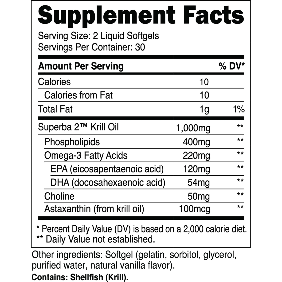 Made with Premium Superba™ Krill Oil: Derived from Antarctic Krill through sustainable practices, Superba™ Krill Oil offers unparalleled purity without any further processing methods. The simple extraction of Superba Krill Oil preserves freshness while maintaining high levels of valuable nutrients like choline, astaxanthin, EPA, and DHA. The result is a clean, natural, and minimally processed product free from additives, preservatives, or unwanted substances.